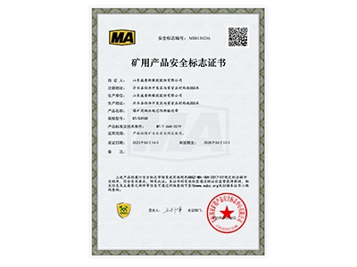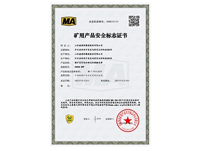 • 礦用產品安全標志證書